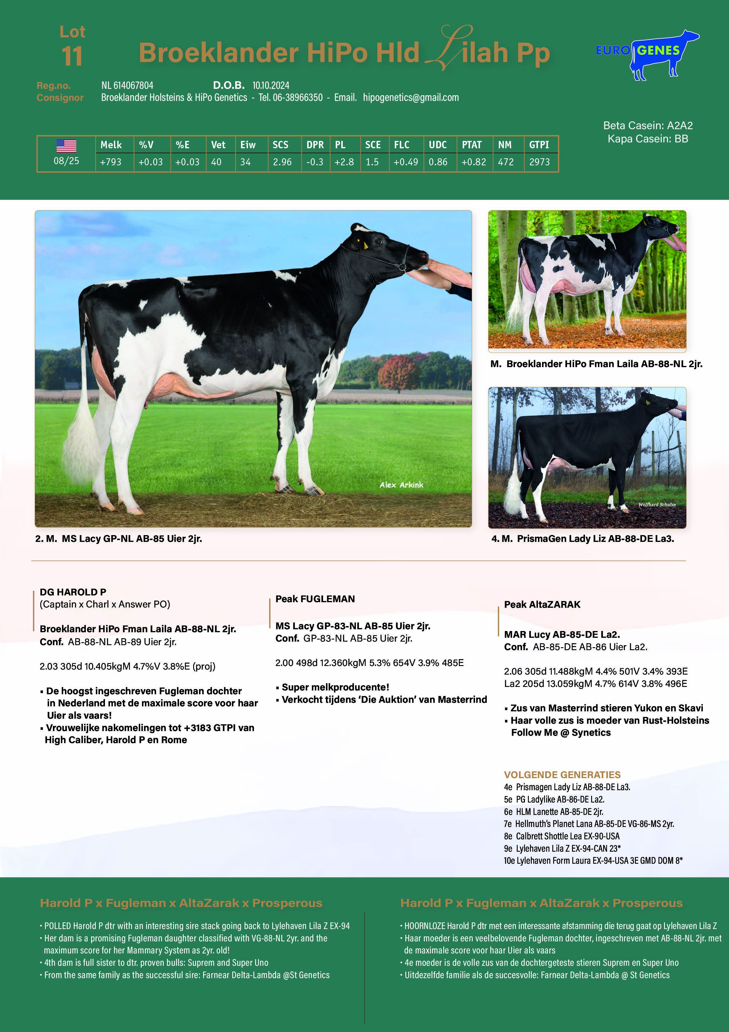 Sire: DG HAROLD PDam: Broeklander HiPo Fman Laila AB-88-NL AB-89 Uier 2jr.