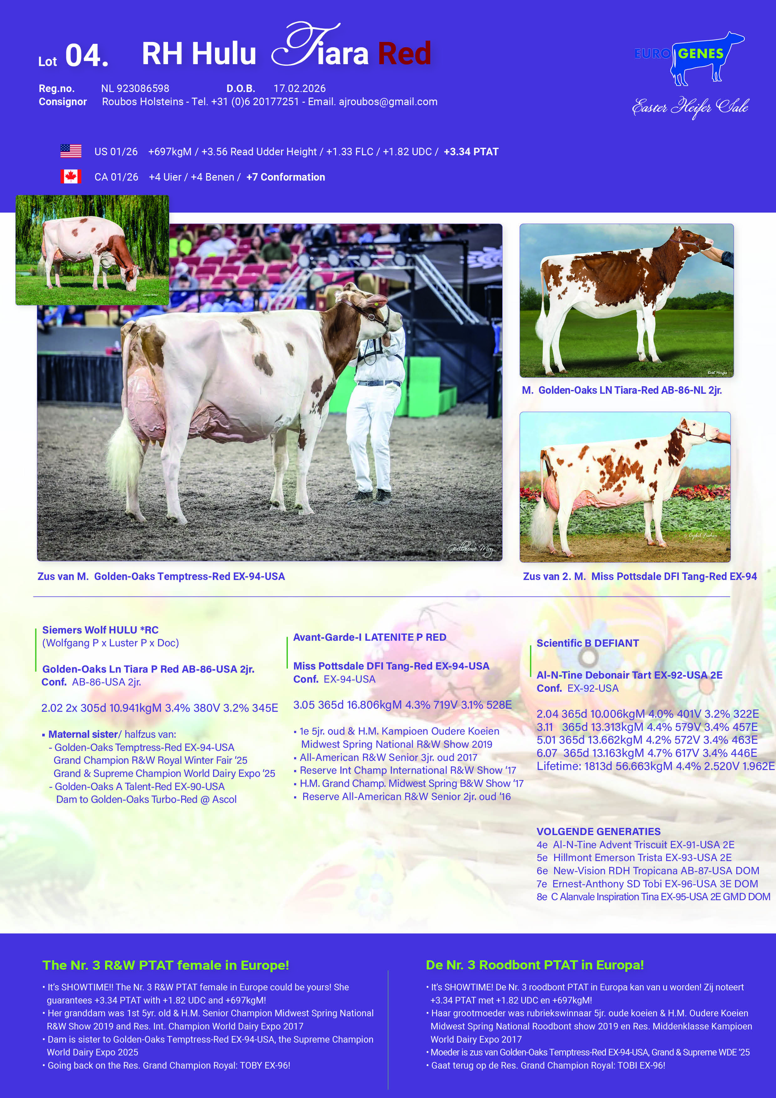 Sire: Siemers Wolf HULU *RCDam: Golden-Oaks Ln Tiara P Red AB-86-USA 2jr.